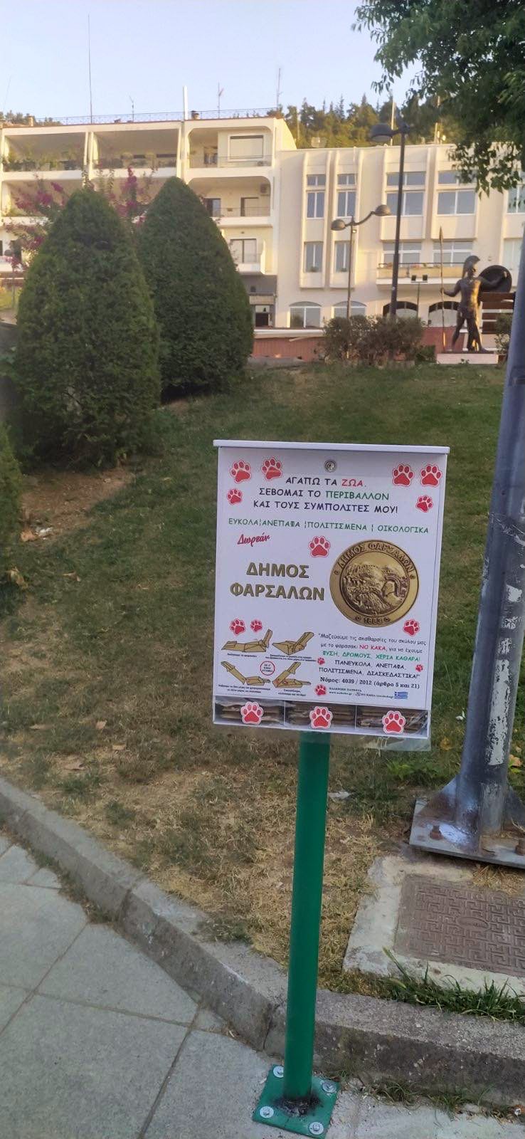 Ο δήμος Φαρσάλων προσφέρει δωρεάν σε 4 κεντρικά σημεία χάρτινα φαράσια μαζέματος των ακαθαρσιών σκύλων, δίνοντας έτσι λύση σε ένα πρόβλημα ανέπαφα, πολιτισμένα, έξυπνα και οικολογικά.